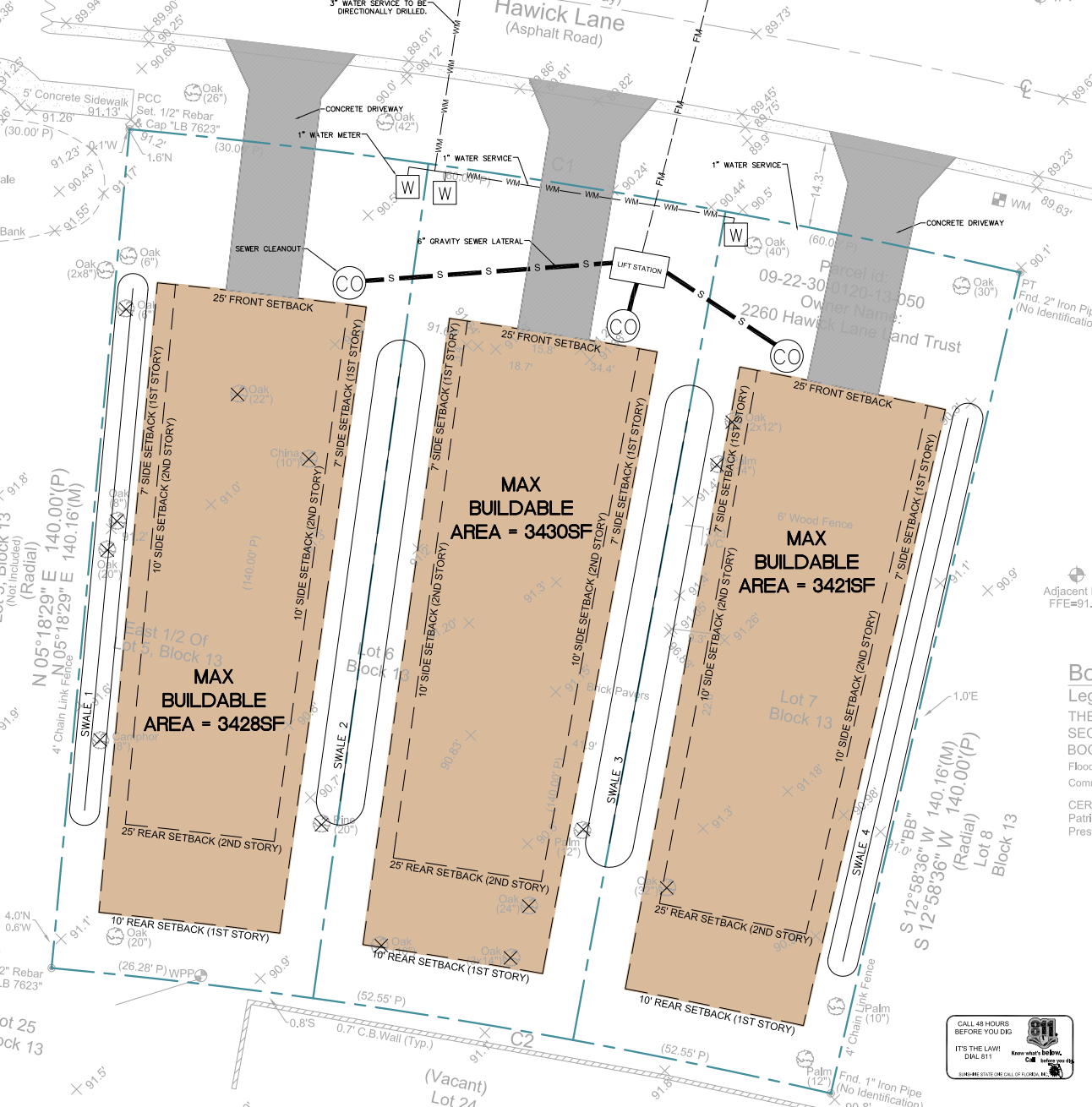 This investment opportunity is prime for Developers, Builders, & Investors for redevelopment. The land is currently vacant. It is believed that the highest and best use of this property would be three (3) fee simple single family lots (50’ wide). The current owner has gotten approval and has rezoned the property to allow for 3 single family homesites (50ft in width). The total land area is approximately 19,698sf. (150ft street frontage by 140ft lot depth). On this page, you will find max building envelope; as well as a property survey before the single family house and trees were demoed.